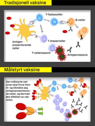 Problemet med vanlige vaksiner er at de sprøytes inn og fordeler seg tilfeldig i kroppen. Det beste ville vært om man kunne styre vaksinen til de cellene som setter i gang immunforsvaret.