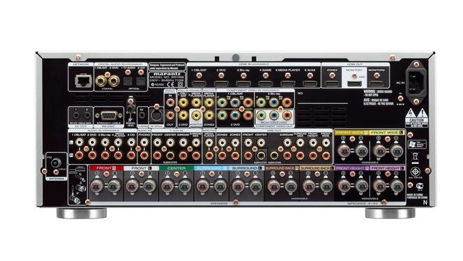 I tillegg til ni kanaler forventer man å få en ganske lang utstyrsliste på dette nivået. Det får man for så vidt også. Den er for eksempel forspent med sju HDMI-innganger og tre HDMI-utganger. Den ene av disse er ment for sone 2. Man kan bruke totalt 3 ekstra soner.