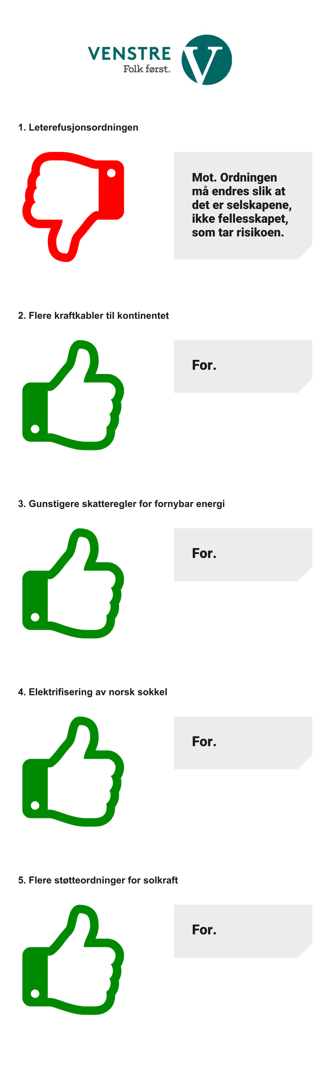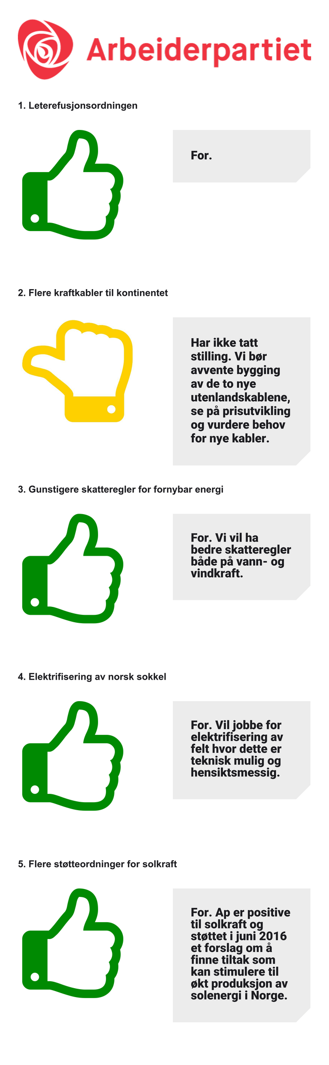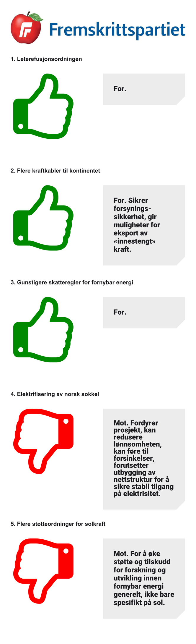 Teknisk Ukeblad har bedt de politiske partiene ta stilling til et utvalg konkrete spørsmål knyttet til fremtidens energiproduksjon og -forsyning i Norge.