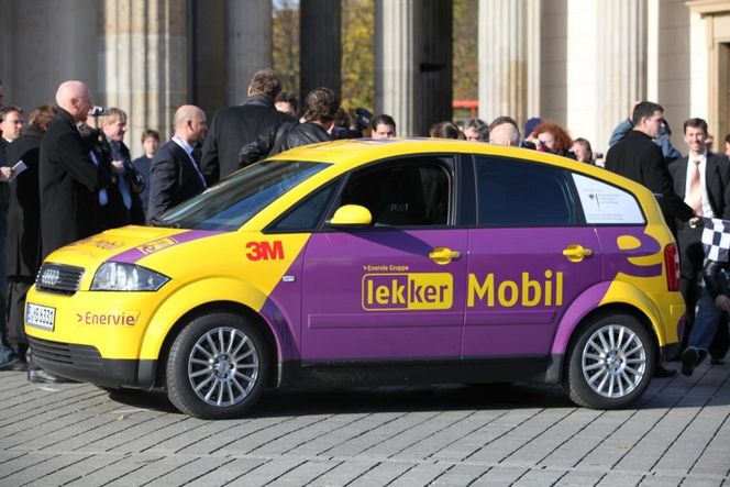 Tyske Mirko Hannemann (27) kjørte tirsdag fra Munchen til Berlin i en Audi A2 bygget om til elektrisk drift – uten å lade på turen.
