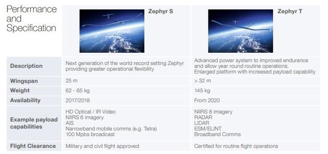 Zephyr er det produsenten kaller en pseudo-satellitt («High Altitude Pseudo-Satellite», HAPS) som skal fylle gapet mellom satellitter, UAV-er og bemannede fly. Den flyr i stratosfæren i en høyde på rundt 70.000 fot, over vær og annen lufttrafikk. Det flyr med batteridrift på natta. Vingespennet er 25 meter, men farkosten veier likevel under 75 kg.