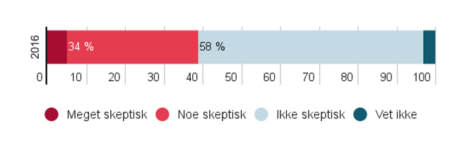 Og det er i privat sektor de er mest lunkne til de ferske teknologene. Her sier til sammen 43 prosent at de er skeptiske til å ansette dem.