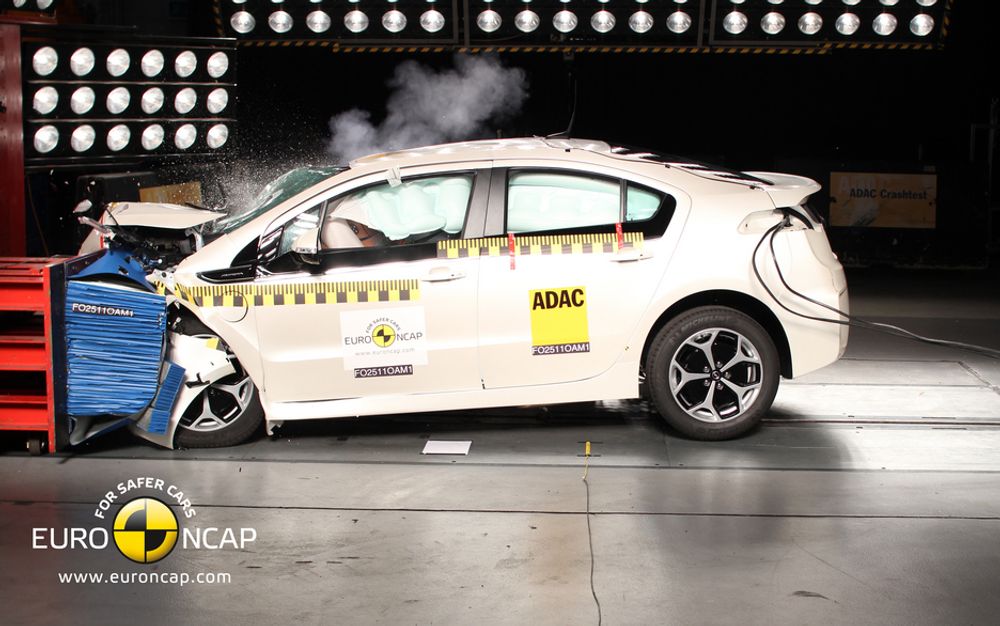 Ampera får fem stjerner av fem mulige, og kommer spesielt godt ut av sidekollisjonstesten. Der får den maksimalt med poeng både mot barriere og stolpe.