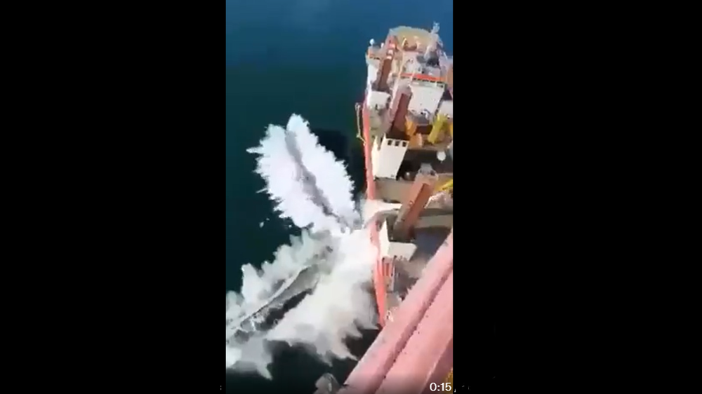 Videoen viser at et feste glipper av navet, og dermed går tre turbinblader med rotor og en 3-tonns turbinbladklemme over bord. Også en pakke med tre rotormotorer, batterier, fire strømskap, smørepumper og andre komponenter havnet i sjøen, ifølge Offshorewind.biz.