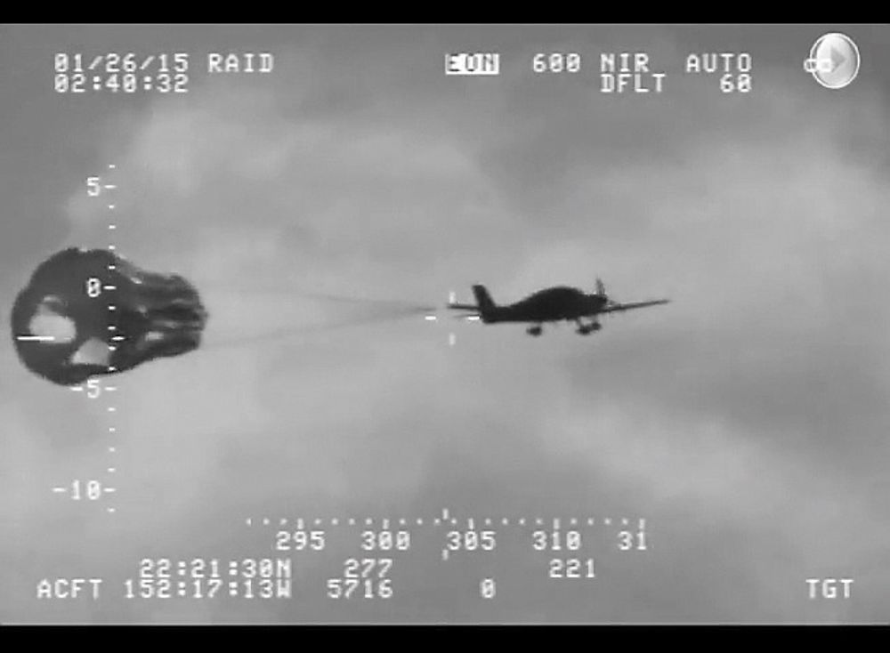 Et av den amerikanske kystvaktens HC-130 Hercules-fly var på vingene og observerte og filmet skjermlandingen.