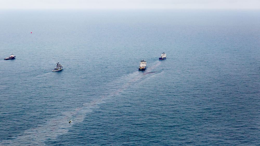 Han fikk selv se hvordan en rekke skip ble satt inn i arbeidet med å få opp oljen, som ga tydelige spor på havoverflaten.