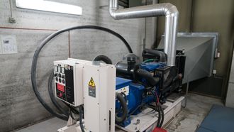 – Her kan man se både isolasjonsverdien, spenninger, frekvens, bryterstatuser, pluss mange andre verdier som viser at generatoren har startet opp og virker som den skal. Og batterispenningen her inne, siden batteriene startes opp under testen og forsyner systemet med spenning, akkurat som den måtte gjort om det skjedde et strømbrudd her i området, sier han.