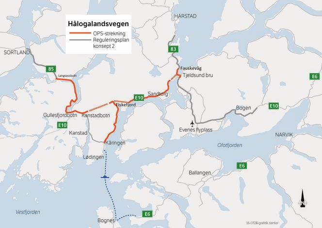 Prosjektet til 8,9 milliarder kroner er Nord-Norges hittil største enkeltstående vegprosjekt, og ligger inne i dagens NTP med planlagt oppstart i 2021 og byggestart året etter. Den eksterne kvalitetssikringa av kostnader og finansiering ble gjennomført sist høst, og Statens Vegvesen sendte sitt endelige forslag til stortingsproposisjon til Samferdselsdepartementet rett før jul.