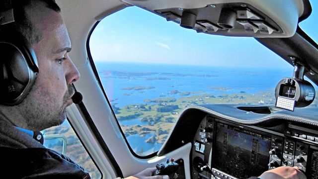 Steinbacher er selv pilot og satt bak spakene på et tomotors italiensk småfly under oppdraget for Kartverket.