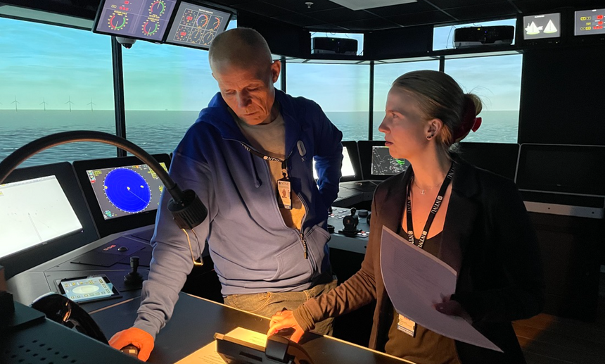 – Simulatorscenarioet la vi tett opp til det som faktisk skjer på eit skip, samt heilt inntil det som skjer i kommunikasjonen mellom skipet og landsida. Men sjølv om scenarioet nytta fullskala maritime brusimulatorar, vart fokuset mest lagt på å få til god diskusjon, forklarer Erstad.
