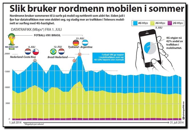 I juli formidlet Telenor i gjennomsnitt 15 gigabyte med data hvert sekund over mobilnettet.