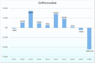 Driftsresultatet har de siste årene vært oppe i hele 439 millioner kroner, men endte i fjor altså med et minus på 18 millioner kroner.