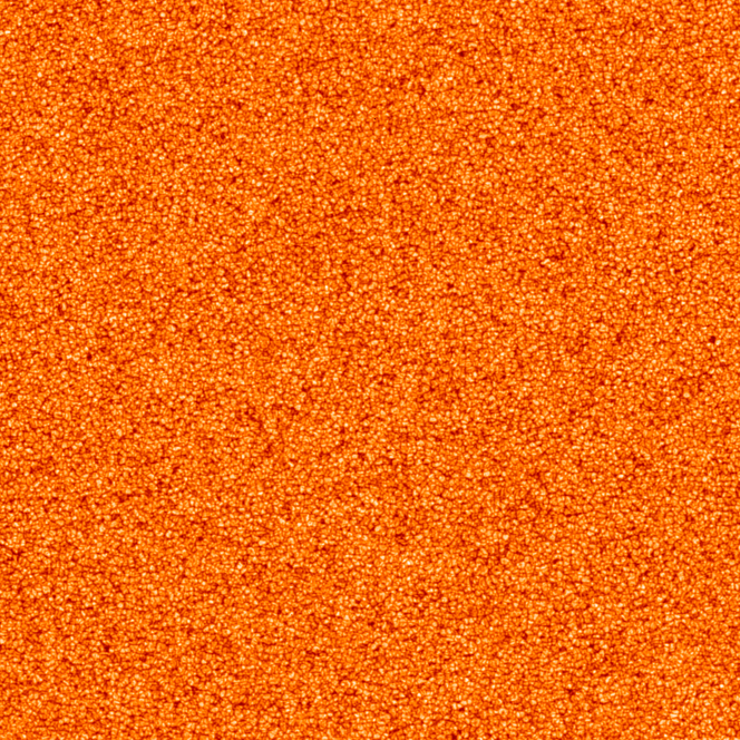 Bildet under viser et område på ca. 200.000 x 200.000 kilometer fra sentrum av solen, og det granulerte mønsteret er et resultat av at den varme plasmaen som beveger seg under den synlige overflaten av solen.