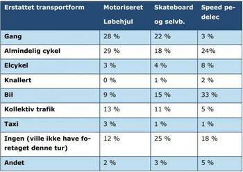 «I tillegg opplyser 24 prosent at de alternativt ville ha brukt en vanlig sykkel, mens 18 prosent oppgir at de ganske enkelt ikke ville ha tatt turen», skriver Færdselsstyrelsen.