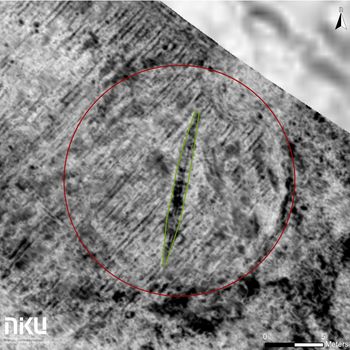 – Restene etter Edøyskipet ble oppdaget rett under dyrkingsjord der det tidligere har vært en gravhaug. Gravhaugen er en markert sirkel på 18 meter diameter. Midt i haugen kan man se en tydelig 13 meter lang kjøl, men totalt kan skipet ha vært 16–17 meter langt. Graven er trolig fra merovingertiden eller vikingtiden, sier Paasche.