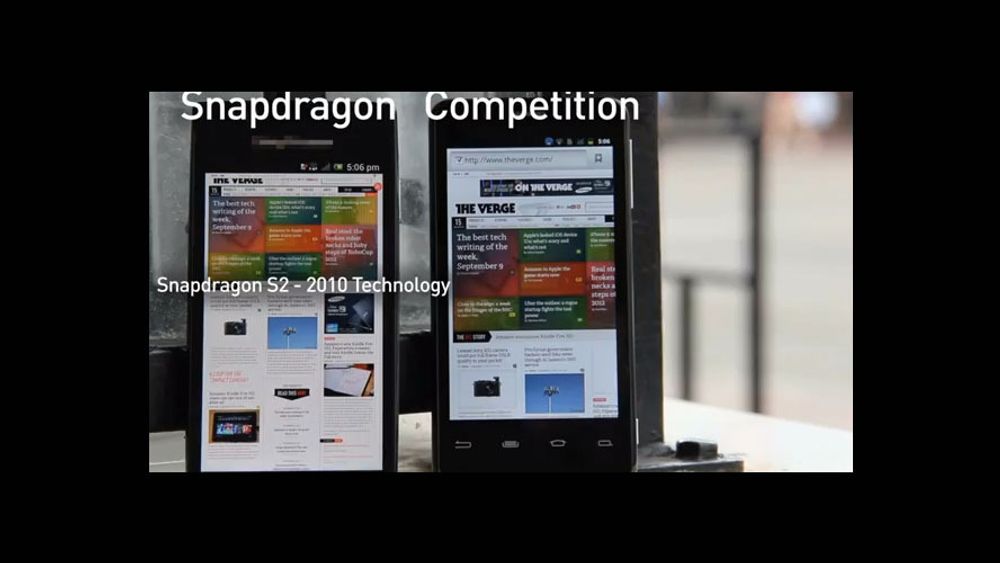 Den siste sammenligningen er det imidlertid lite å utsette på. Her sammenlignes lastetid og hakking ved surfing på nett, og ting går utvilsomt kjappere på Qualcomm-maskinvaren.