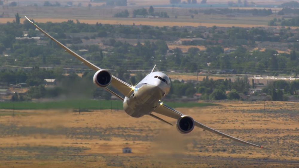 Videoen er tatt opp ved Moses Lake, 25 mil øst for Boeings 787-fabrikk i delstaten Washington.