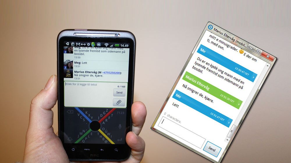 Alle innkommende meldinger vil nå dukke opp i et chat-vindu på PC-en. Det er egne vinduer for hver kontakt, og innkommende og utgående meldinger vises som samtaler akkurat som i for eksempel Windows Live Messenger.