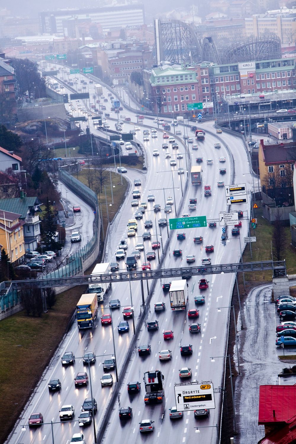 Noen timer før vi begir oss ut i fredagsrushet skubber et vogntog og en personbil i hverandre på motorveien utenfor Liseberg.