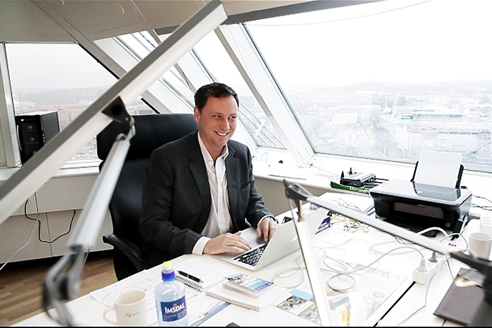 Kollegene og pendlerekteparet Mikael og Johanna Fredman har kontor i 22. etasje på skyskraperen som går under navnet Läppstiftet.