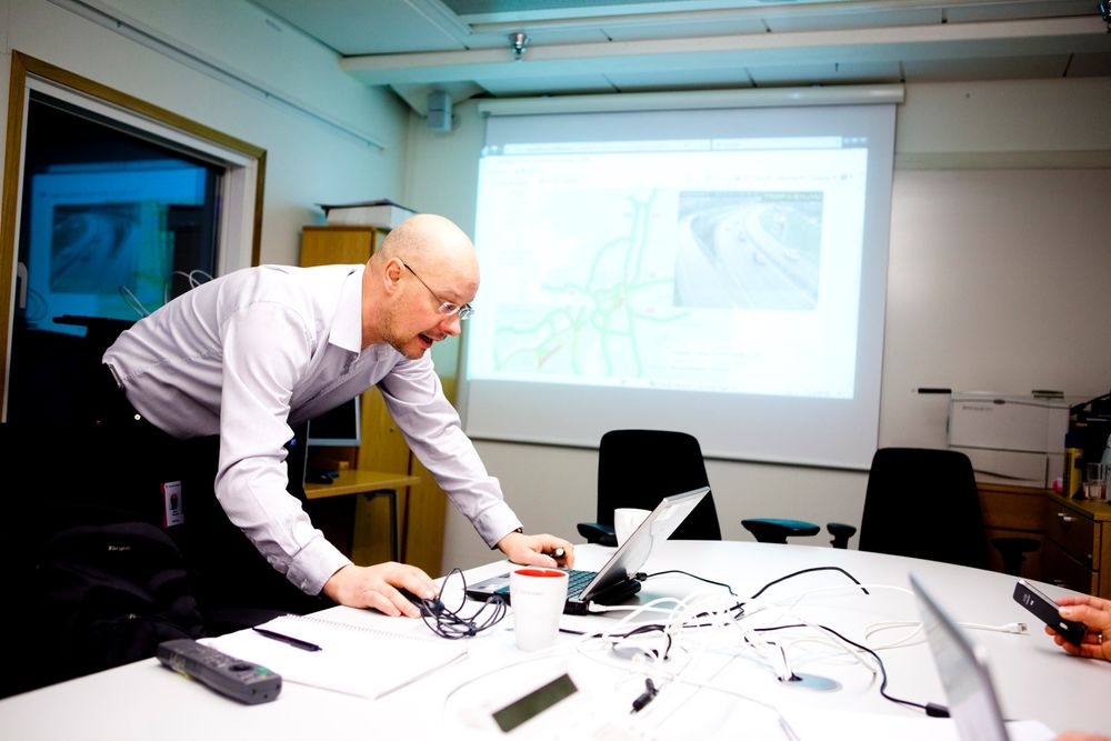 På veitrafikksentralen i Gøteborg følger trafikklederen opp det lille trafikkuhellet utenfor Liseberg. Det ser ut til å gå greit.