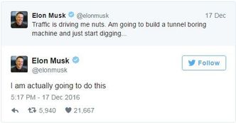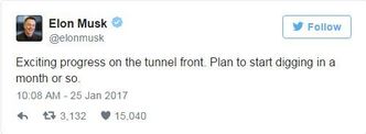 Teknisk Ukeblad har tidligere skrevet om Teslagründer Elon Musks twitter-meldinger der han skrev at han ønsket å bygge en egen tunnel under Los Angeles.