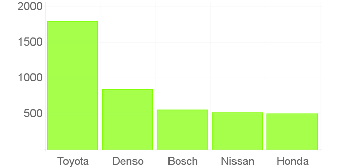Kjøreassistent – automatiserer og forbedrer systemer for sikring og bedring av kjøreegenskapene når en fører styrer en bil. Vi snakker eksempelvis om teknologi som skal hjelpe fører å unngå kollisjoner gjennom å varsle eller å ta over styring for å unngå farer. Teknologien omfatter blant annet ryggesensor, fotgjengersensor, feltvarsling og intelligent bremsing. Ser vi på hvem som har registrert flest patenter her, får vi følgende liste: