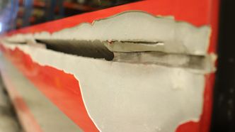 Det er ikke hver dag, eller hvert år, man ser slike skader. En høstdag i 2018 passerte et togsett i Flirt-serien tuppen av en traktorhøygaffel med fem cm margin. Dessverre var marginen på feil side, og resultatet ble en 80 meter lang flenge i togsettet. For NSB, som til enhver tid ønsker flest mulig operative togsett på skinnene, begynte klokken å tikke.