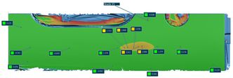 Ved å sette små markører på den overhalte flaten, kunne laseren scanne over og raskt skape et 3D-modell av togsidens veggprofil. Basert på dette kunne det vurderes om planhet og profil var innenfor gitt toleransesone.