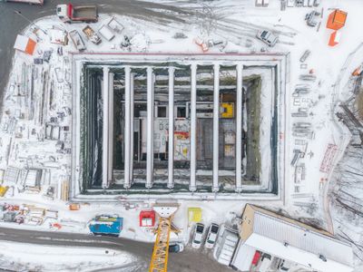 Rett ved jernbanestasjonen er et område sperret av med høye anleggsgjerder. En heisekran løfter lange stålrør ned i en sjakt som forsvinner rett i bakken. For de fleste er det bare nok en byggeplass.