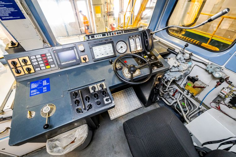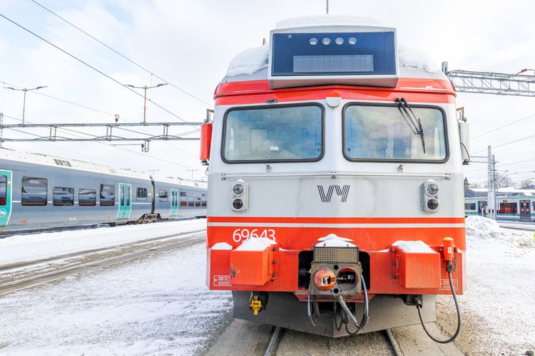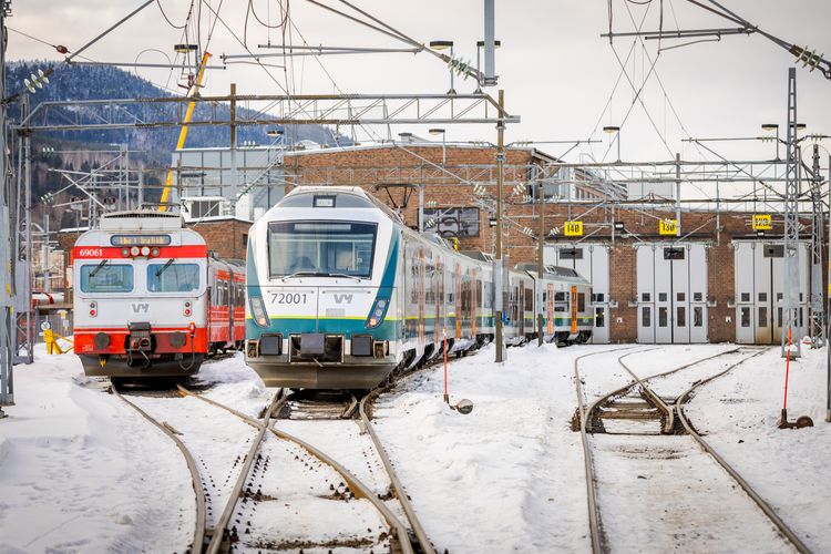 Utenfor verkstedhallen står togene på rekke og rad. Noen venter på service, andre på reparasjon. Inne i den ene hallen står et Flirt-tog klart til avvising før arbeidet kan starte. Utenfor står et annet Flirt-sett, nylig skadet etter en kollisjon med elg.