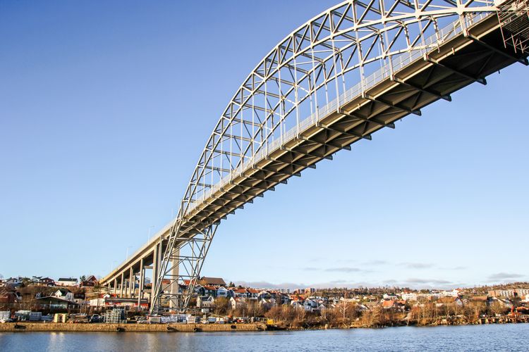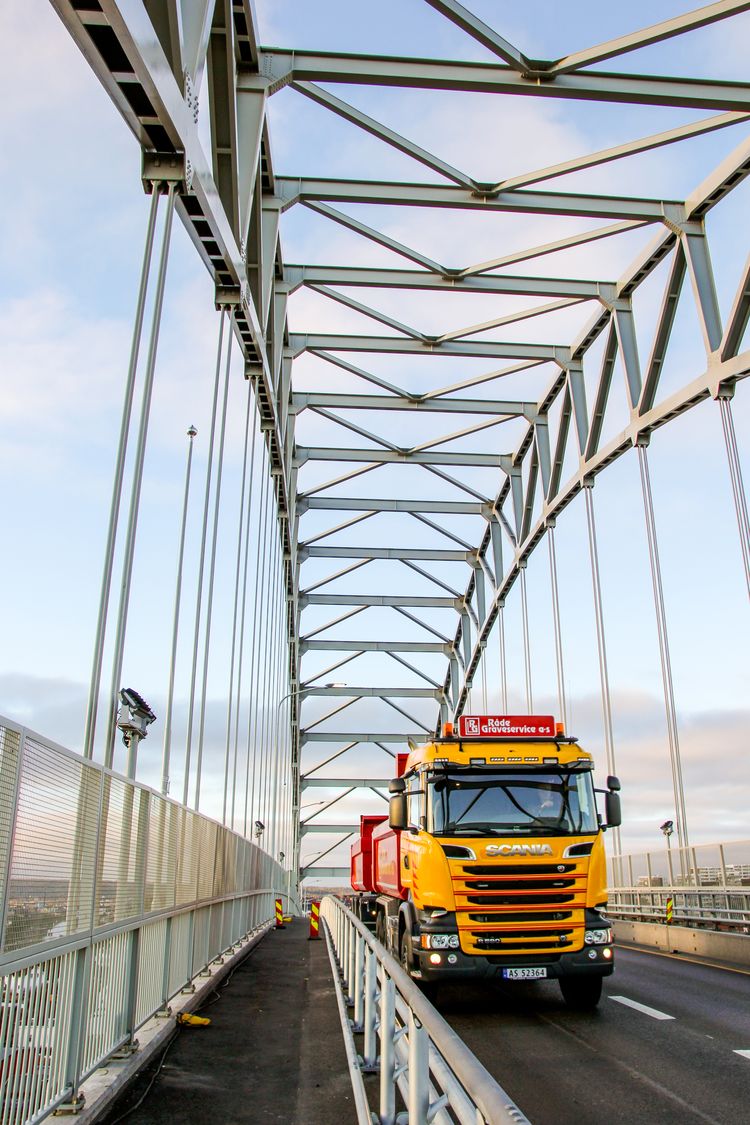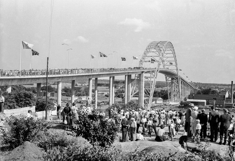 Pomp og prakt i Plankebyen den 18. august 1957: Ei ny, moderne bru ruver i landskapet.