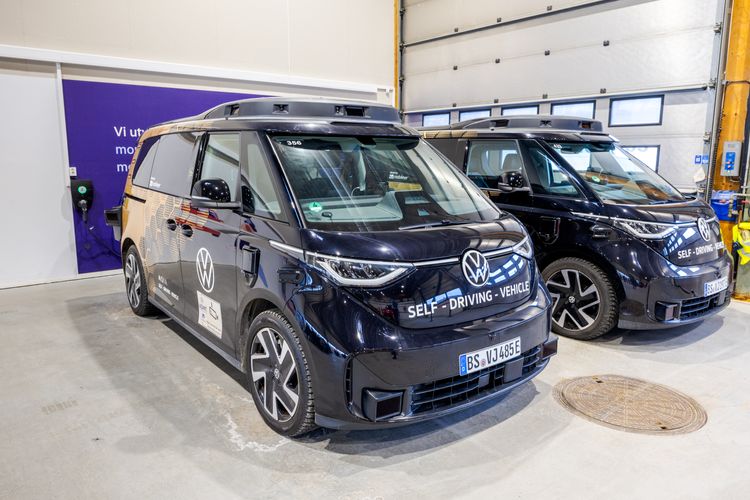 I en garasje på Grorud i Oslo står to autonome VW ID. Buzz. De er minibusser, den nye folkevognbussen, som de er kalt. Dette er prototyper og modifiserte utgaver, med tre seter bak.