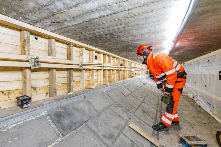Alle forberedelser er gjort. Fire stålkjernepeler er fundamentert 50 meter ned til fjell, en på yttersiden av hver bru. Den over 60 år gamle og ødelagte bærebjelken er dekket til, og utenfor denne er det montert armeringsjern og forskaling for den nye. Den skal være 90 centimeter høy, 70 centimeter bred, strekke seg 13 meter på tvers under hele brua, og omslutte de nye stålkjernepelene for stabil forankring.