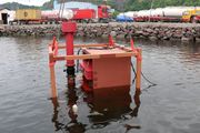 Se gasskjøleren bli senket i havna i Holmestrand