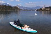 Dette padlebrettet har en liten innebygget motor og blåser seg opp selv
