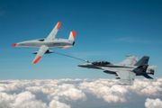Luftfartshistorie, sier Boeing: Her får Super Hornet-flyet drivstoff i lufta fra et ubemannet tankfly