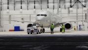 Her dyttes P-8 Poseidon inn i hangaren på Evenes for første gang