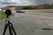 Her prøver forskere å måle støy og utslipp på kjøretøy i fart