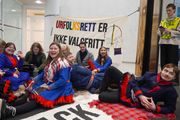 Aktivister demonstrerer mot vindturbiner inne i Olje- og energidepartementet