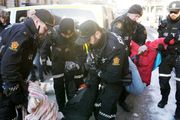 Politiet bærer bort demonstranter fra Finansdepartementet
