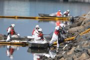 Mannskaper jobber på spreng for å begrense oljesølet i California