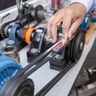 Jakobsen finner fram to tilsynelatende like remmer fra hyllene. Begge er kileremmer med omlagsduk, men har forskjellig gummiblanding. Den ene er mye mykere enn den andre.